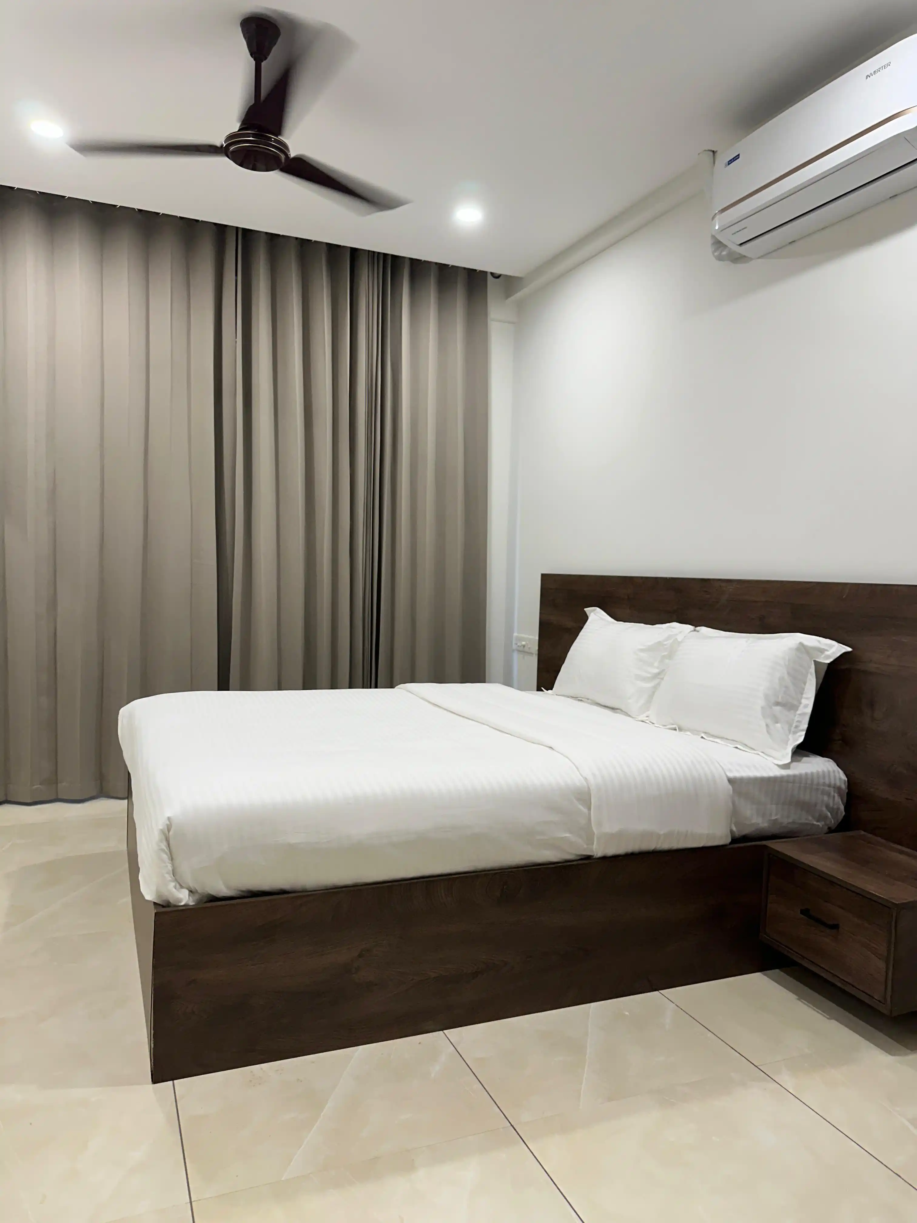 Prisunic Portico offers flexible rental options, providing daily, weekly, and monthly rates for its 19 fully furnished apartments. The property comprises 14 one-bedroom (18HK) units, 3 two-bedroom (2BHK) units, and 2 three-bedroom (3BHK) units.